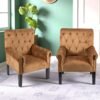 Ikiriya Arista Sheesham Wood Accent Set of 2 Lounge Chair in Taupe Brown Velvet Upholstery