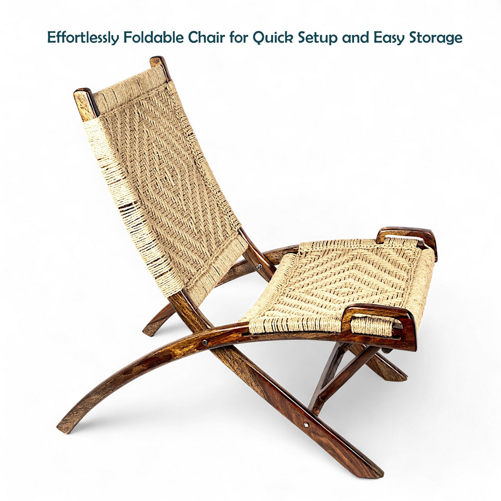 Ikiriya Natwest Sheesham Wood Vintage Relaxing Chair in Natural Jute Rope Canning
