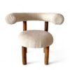 Ikiriya Westfield Sheesham Wood Mid Century Lounge Chair in off White Soft Boucle Fabric Upholstery