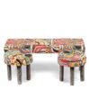 Ikiriya Asteria Sheesham Wood Bohemian 3+1+1 Seater Bench Set with 2 Stools in Israel Print Patchwork Kantha