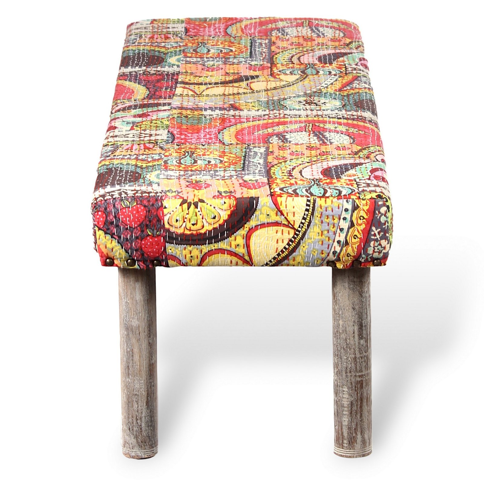 Ikiriya Asteria Sheesham Wood Bohemian 3+1+1 Seater Bench Set with 2 Stools in Israel Print Patchwork Kantha