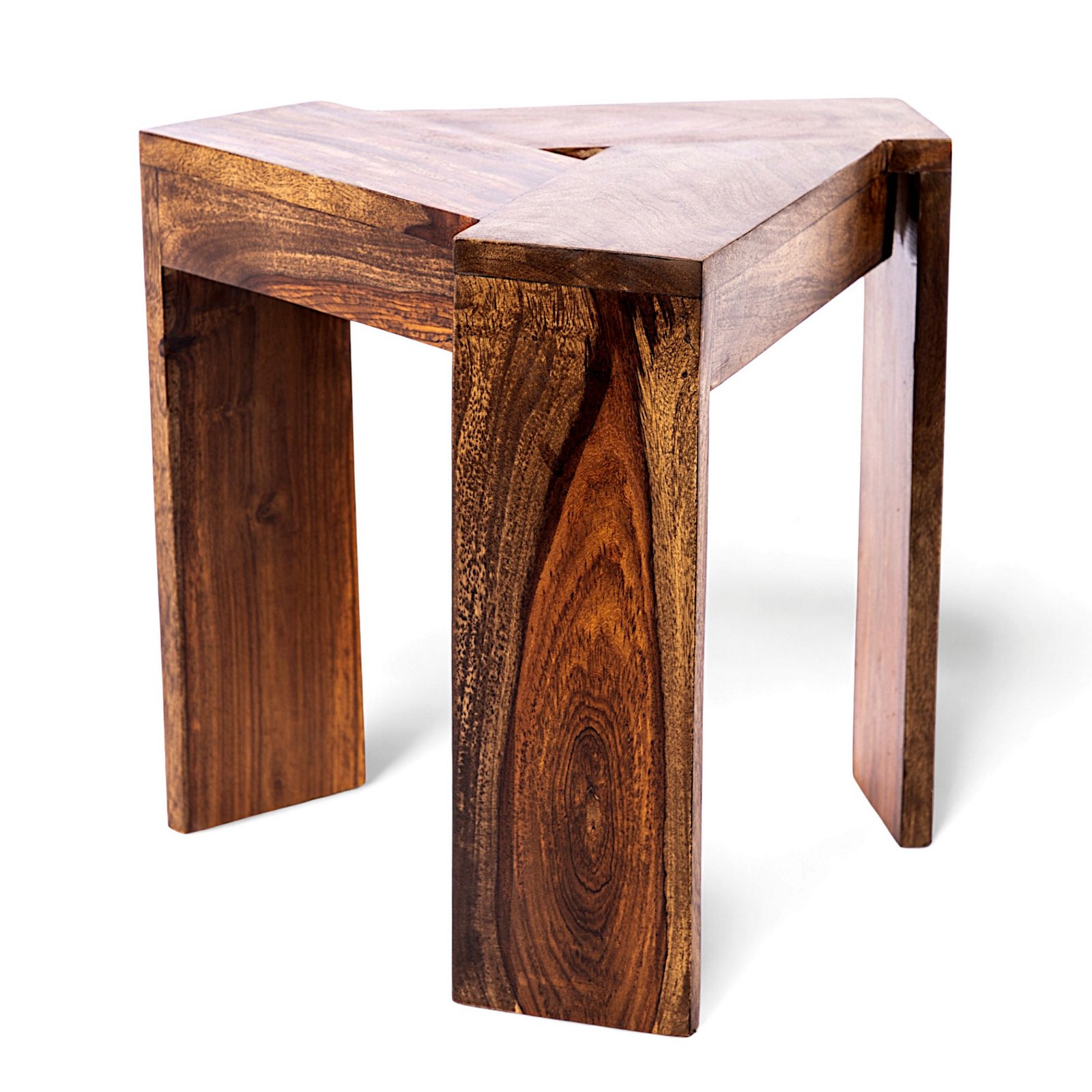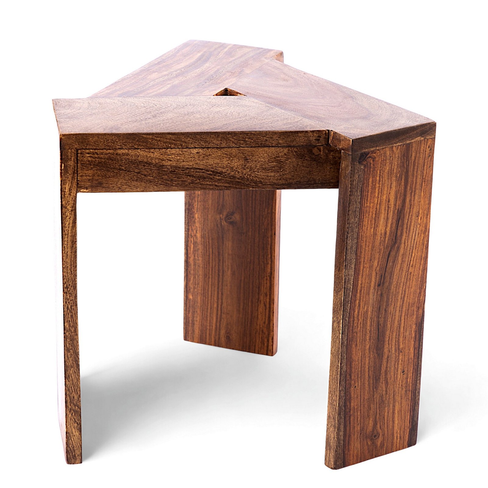 Ikiriya Avina Sheesham Wood Contemporary Triangle Set of 2 Sidetable / End Table in Teak Finish