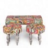 Ikiriya Bestone Sheesham Wood Bohemian 2+1+1 Seater Bench Set with 2 Stools in Israel Print Patchwork Kantha