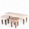 Ikiriya Blane Sheesham Wood Accent Coffee Table Set with 4 Stools in Teak Finish with Beige Sparkle Velvet Cushions