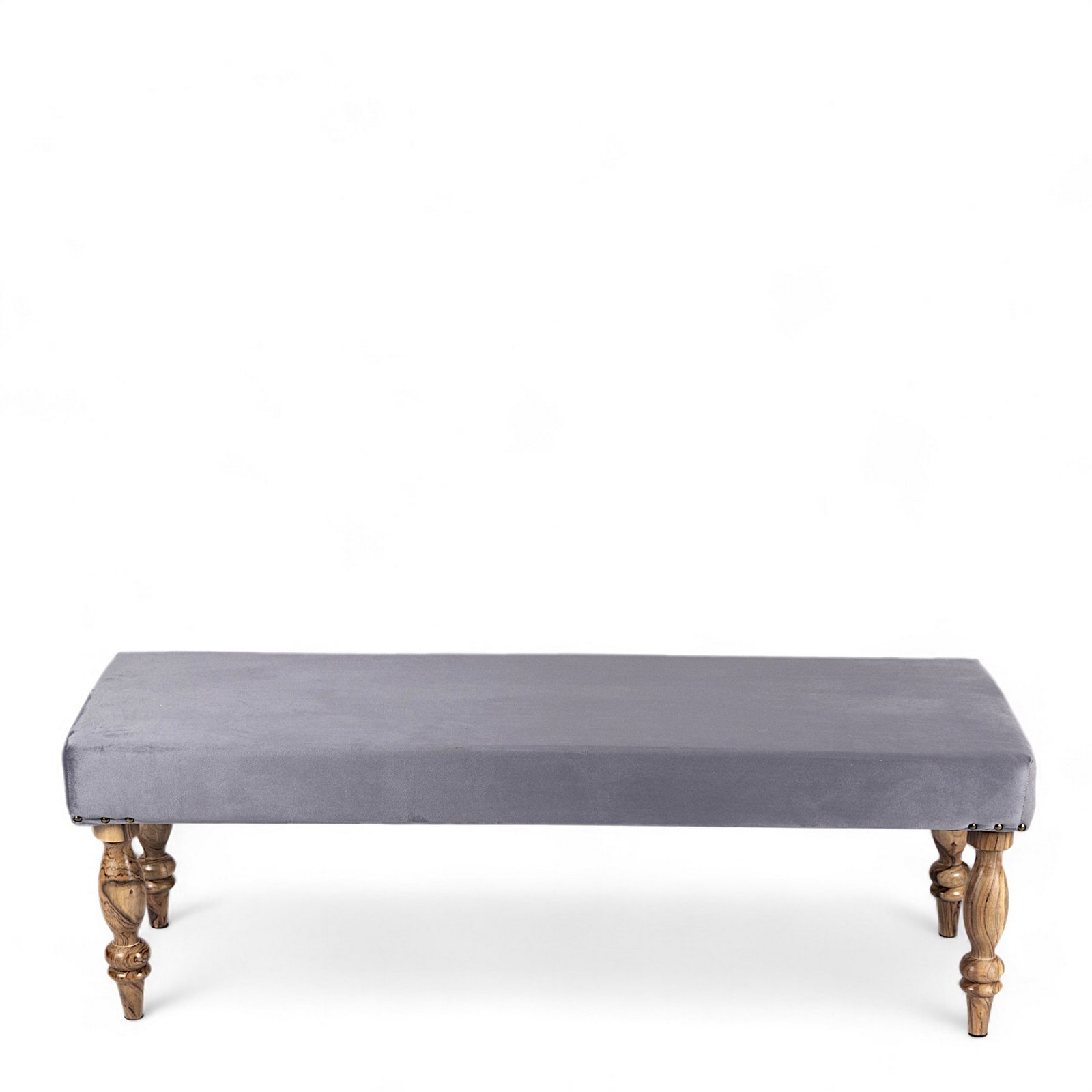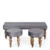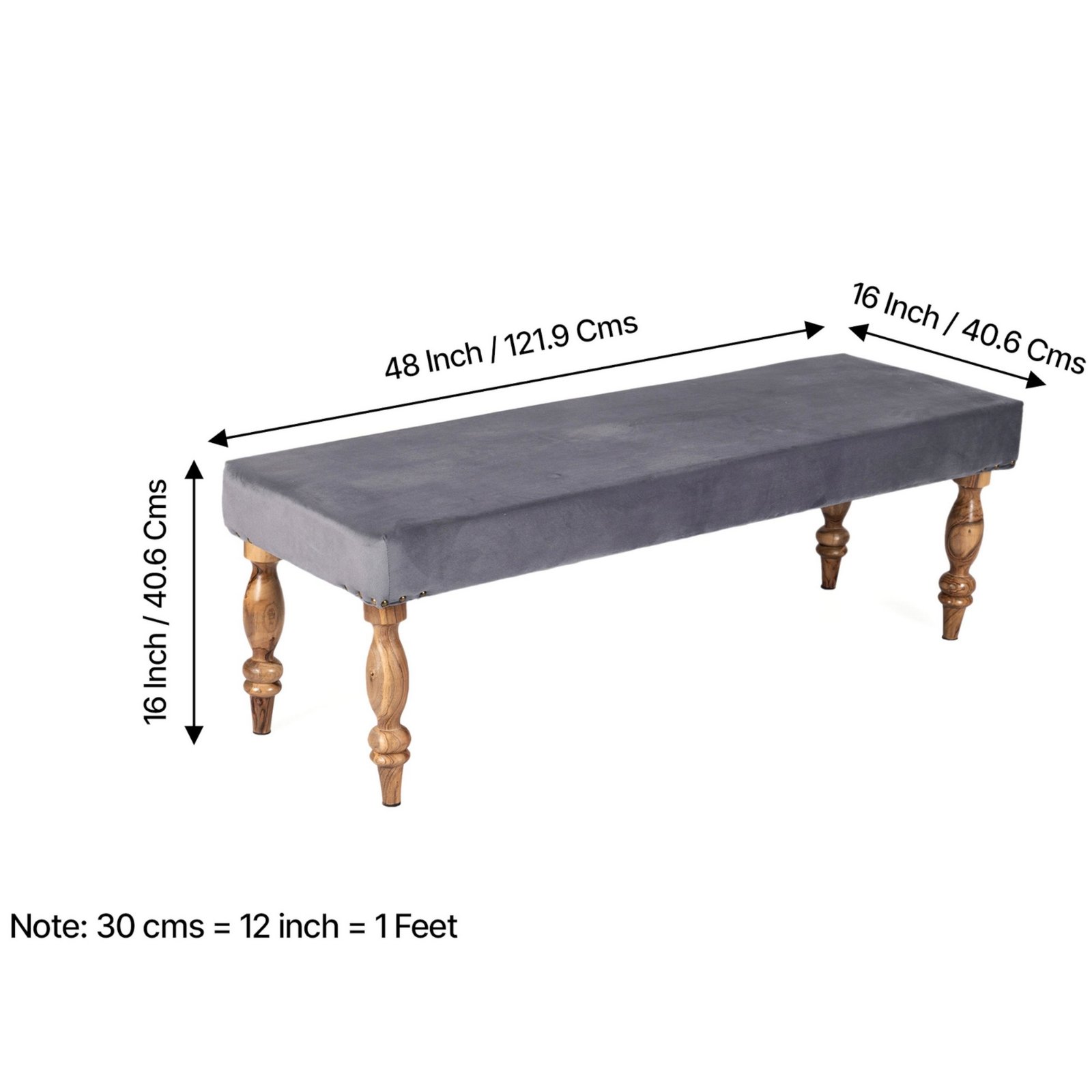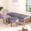 Ikiriya Cairo Sheesham Wood Accent 3+1+1 Seater Bench Set with 2 Stools in Iron Grey Velvet