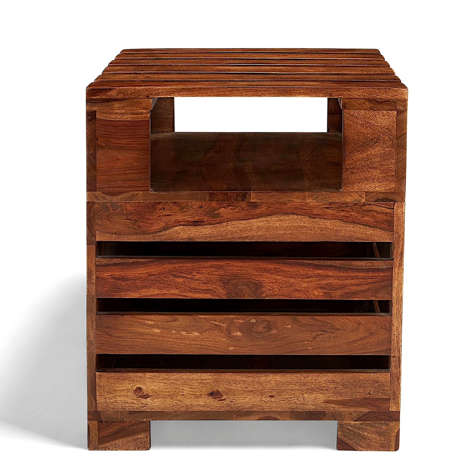 Ikiriya Harvey Sheesham Wood Contemporary Bedside Table/ End Table in Natural Teak Finish