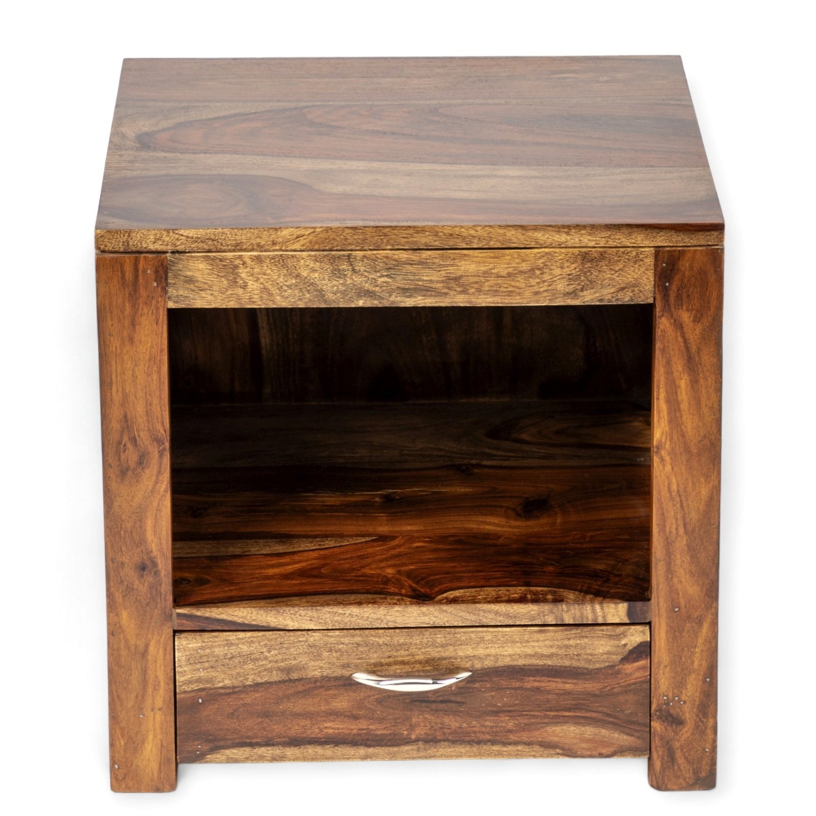 Ikiriya Russell Sheesham Wood Contemporary Bedside Table/ End Table in Teak Finish