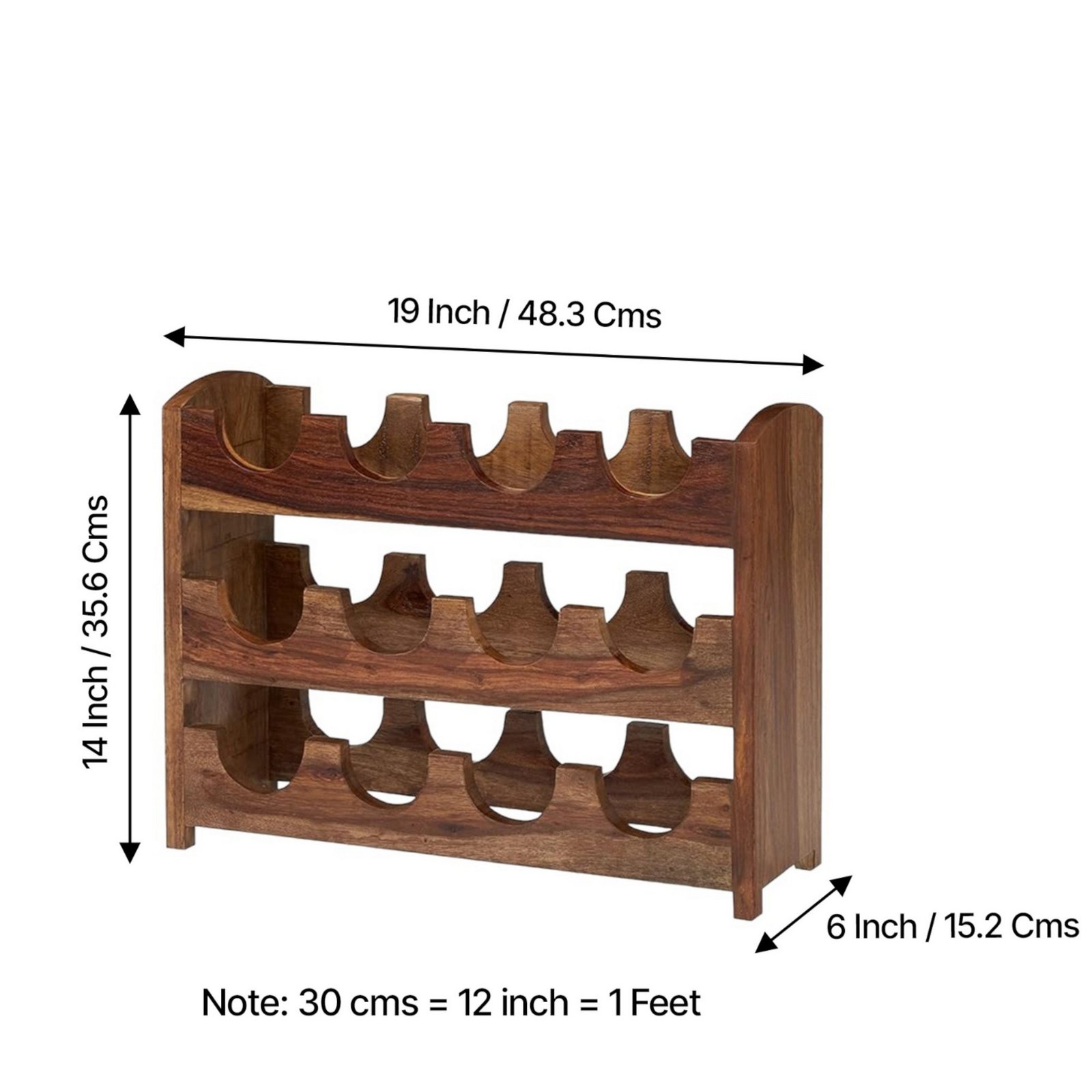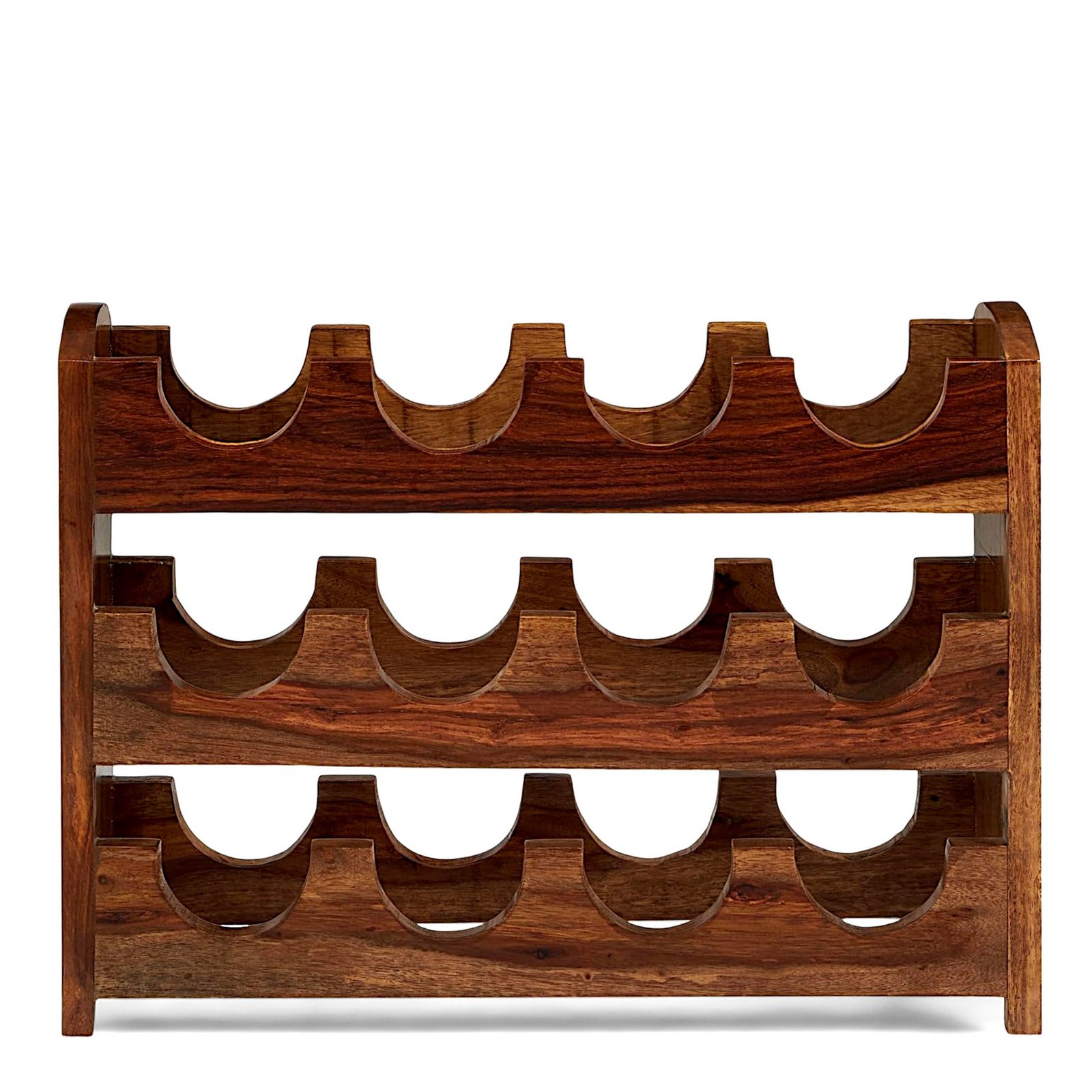 Ikiriya Kassel Sheesham Wood Accent Wine Rack in Natural Teak Finish for upto 12 Bottles