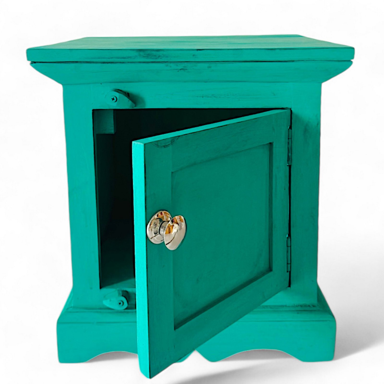 - Crafted from 100% seasoned solid Sheesham wood, this piece features a charming Pastel Green color with a mild distressed finish, adding a touch of rustic elegance. The light tone combined with a cool, bright matte finish creates a soft and soothing aesthetic. Finished with wood distemper and wood wax polish, it ensures a smooth texture while preserving the wood’s natural beauty, making it both stylish and durable.