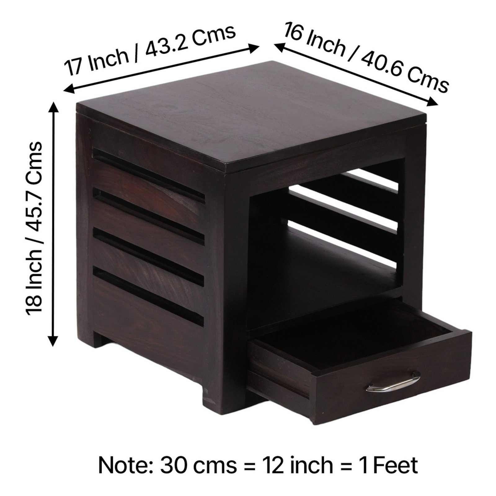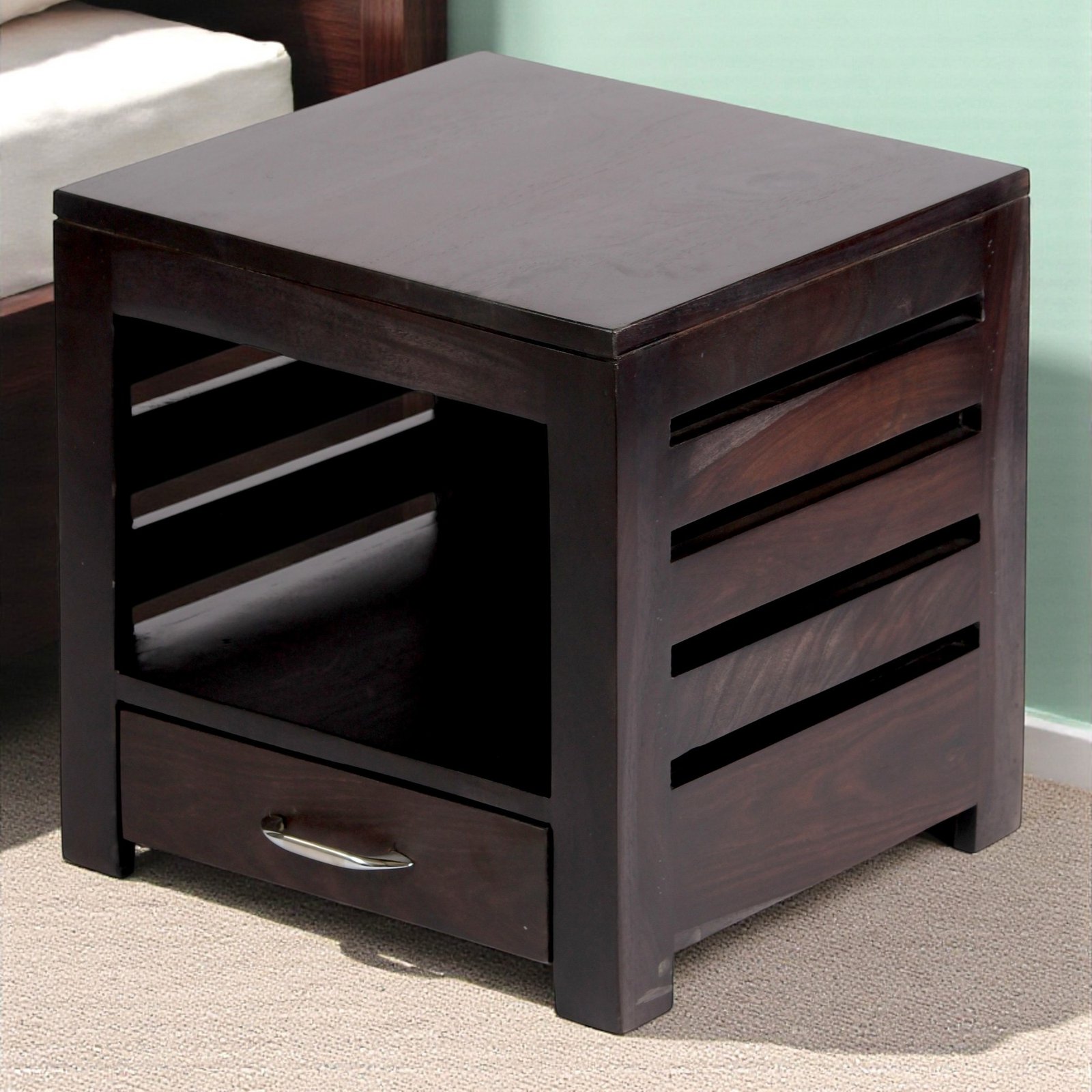 Ikiriya Russell Sheesham Wood Contemporary Bedside Table/ End Table in Dark Mahagony Finish