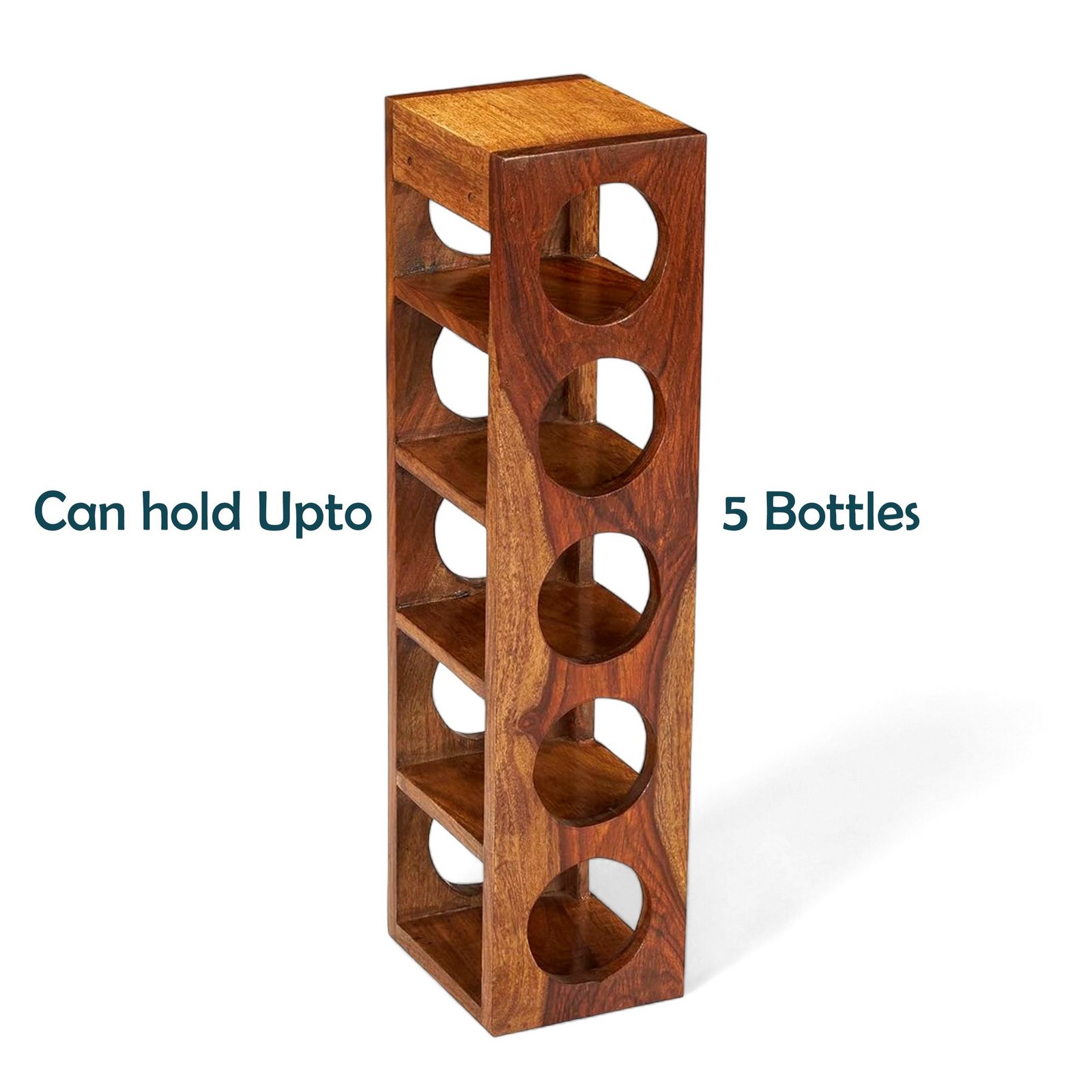 Ikiriya Wembley Sheesham Wood Accent Wine Rack in Natural Teak Finish for upto 5 Bottles