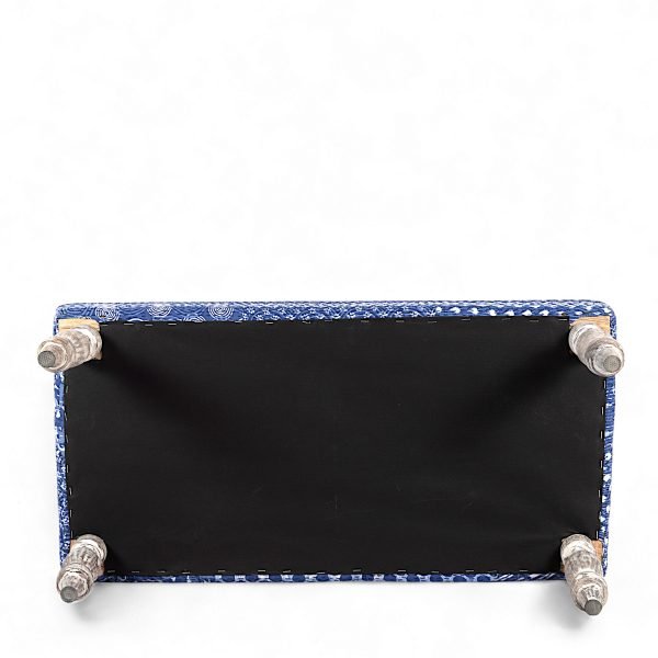 Cairo Sheesham Wood Accent 3+1+1 Seater Bench Set with 2 Stools in Blue Jacquard Work Fabric