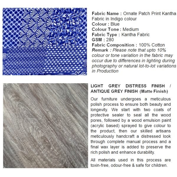 - The Ornate Patch Print Kantha Fabric in Indigo adds a unique flair, perfect for those who appreciate artisanal craftsmanship.