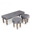 Bestone Sheesham Wood Mid Century 2+1+1 Seater Bench Set with 2 Stools in Grey Fabric with Fringes