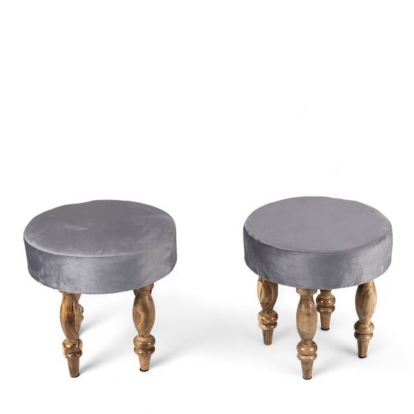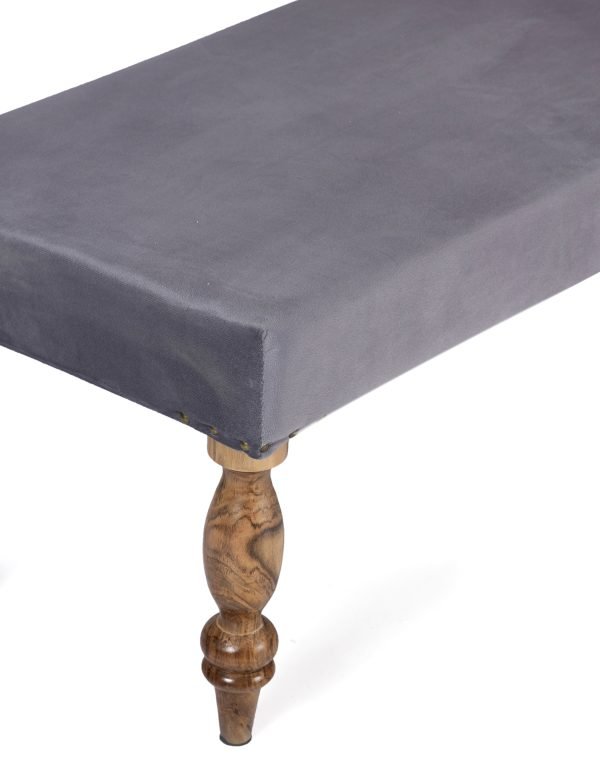 Cairo Sheesham Wood Accent 3+1+1 Seater Bench Set with 2 Stools in Iron Grey Velvet