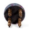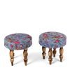 Bestone Sheesham Wood Mid Century 2+1+1 Seater Bench Set with 2 Stools in Fruit Print Blue Kantha