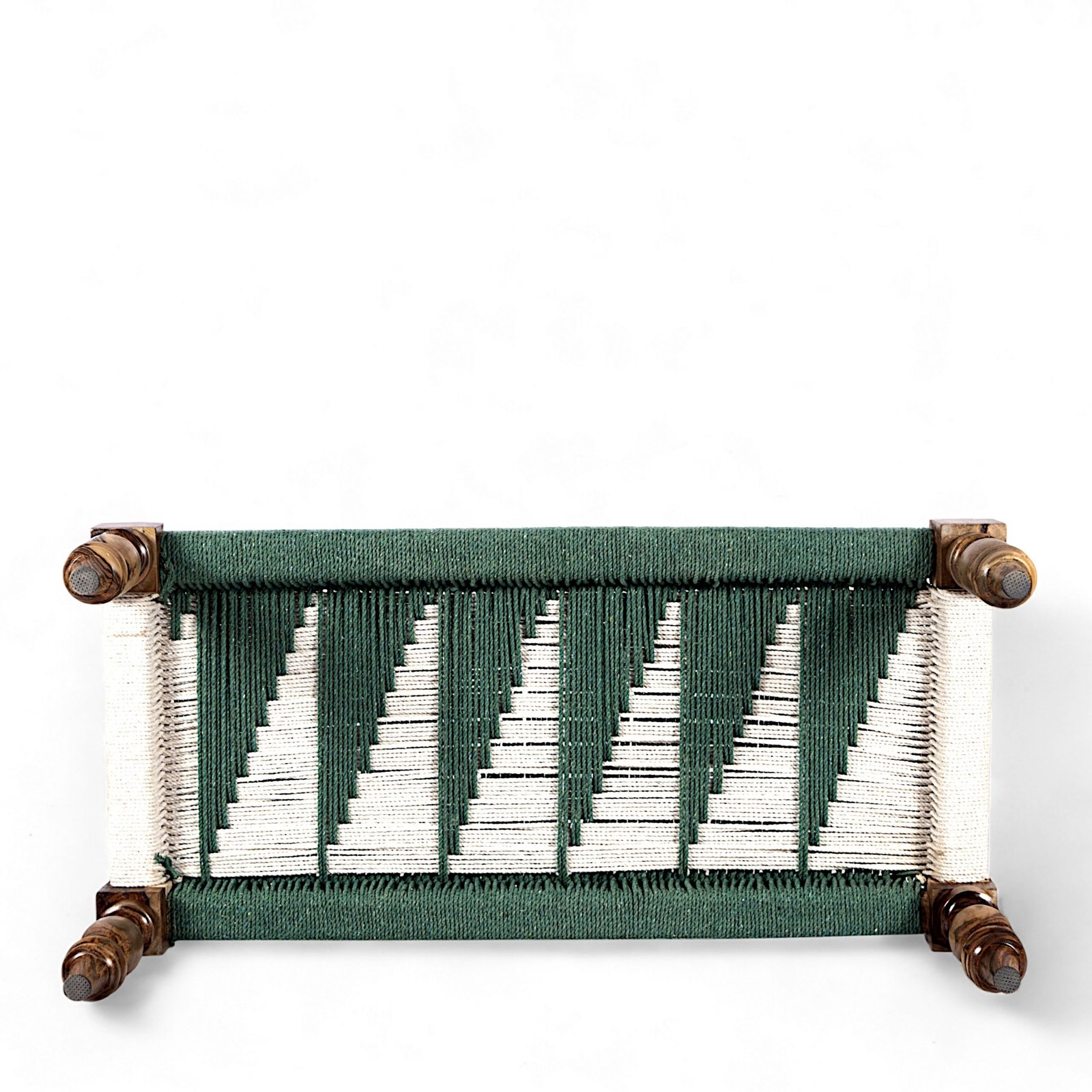 - Experience the charm of Maachi Work with this handcrafted bench from Jaipur. Woven by skilled artisans using vibrant, durable strong cotton ropes, it showcases intricate patterns made entirely by hand, preserving the traditional craft without any machine involvement.