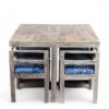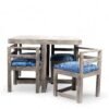 Ikiriya Kingston Sheesham Wood Mid Century 4 Seater Dining Table Set with Antique Grey Finish & indigo Patchwork Kantha Cushioning