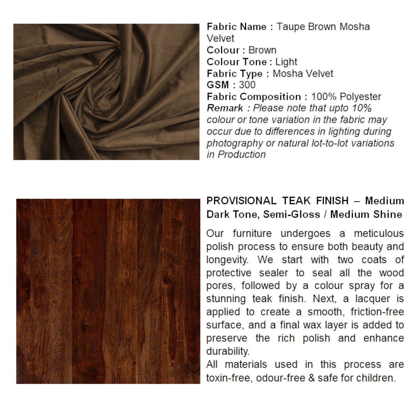 . Wood Polish Material: Semi Gloss Lacquer polish & Water Resistant Protective Sealer Coating