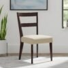 Ikiriya Newport Sheesham Wood Accent Set of 2 Dining Chairs in Beige Mossy Fabric Cushioning with Dark Walnut Finish