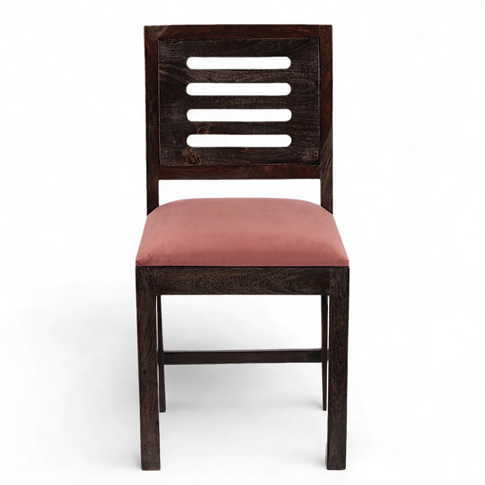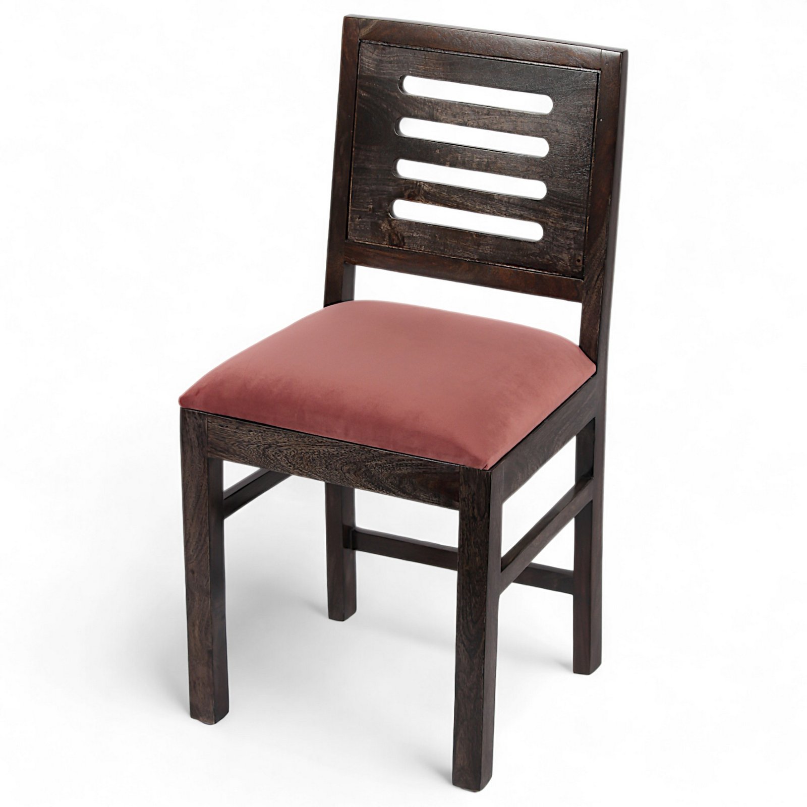 Ikiriya Rosslyn Sheesham Wood Accent Set of 2 Dining Chairs in Coral Pink Velvet Cushioning with Dark Mahagony Finish