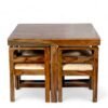 Ikiriya Blane Sheesham Wood Accent Coffee Table Set with 4 Stools in Extra Dark Mahagony Finish with Green Sparkle Velvet Cushions