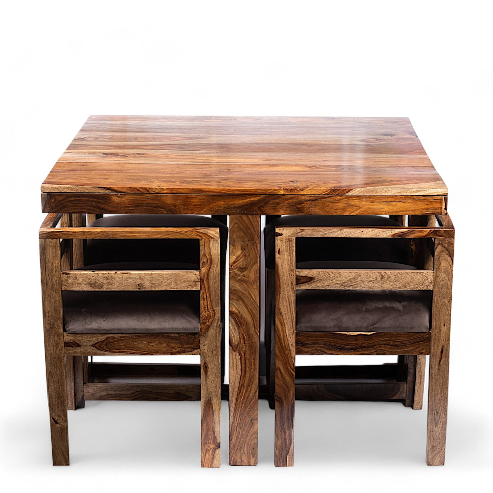 Ikiriya Kingston Sheesham Wood Accent 4 Seater Dining Table Set with Teak Finish & Cedar Brown Velvet Cushioning