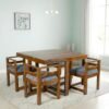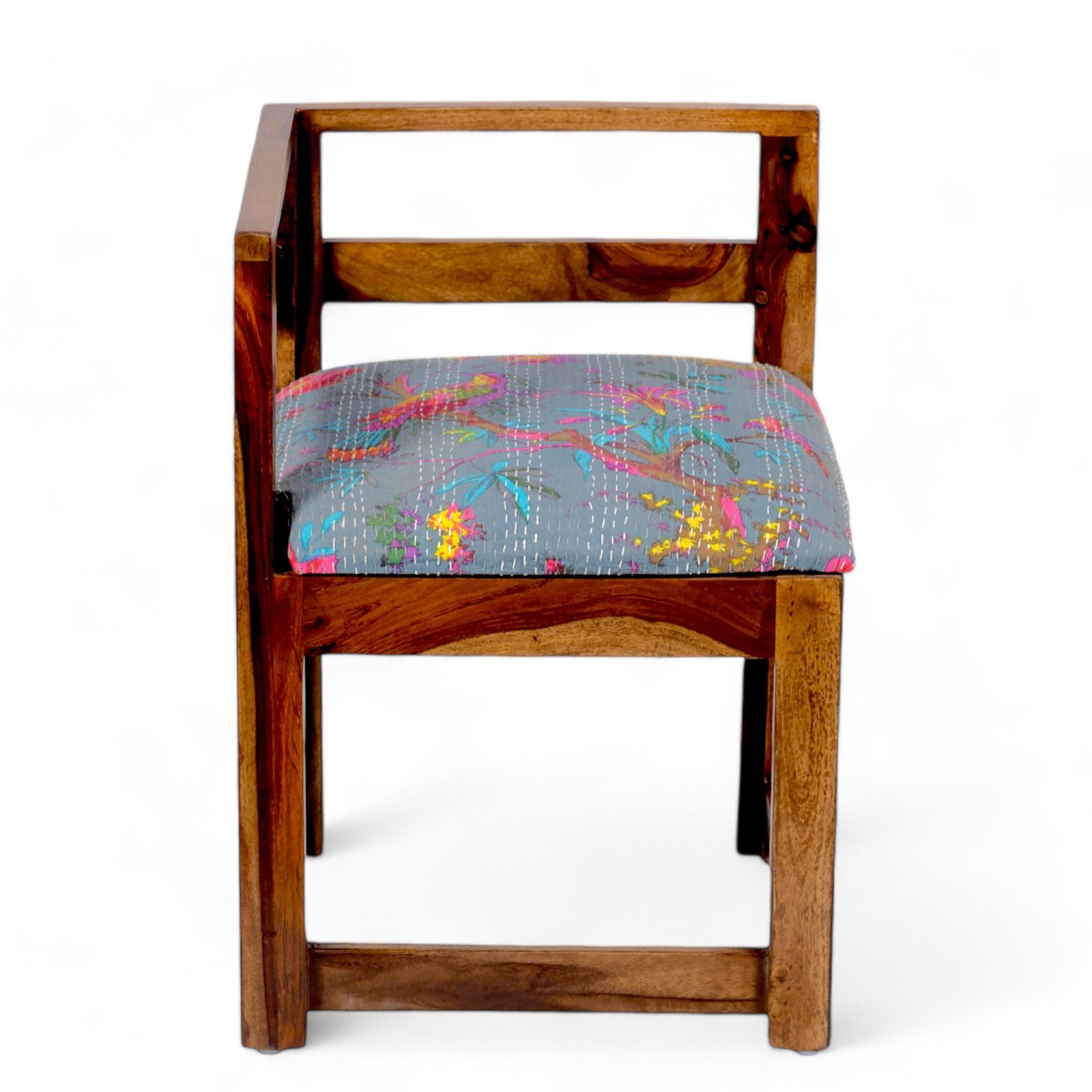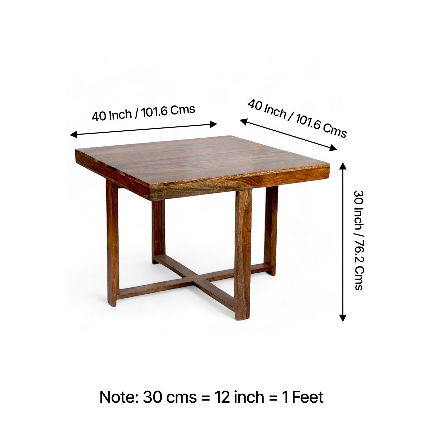 Ikiriya Kingston Sheesham Wood Mid Century 4 Seater Dining Table Set with Teak Finish & Grey Brid Print Kantha Cushioning
