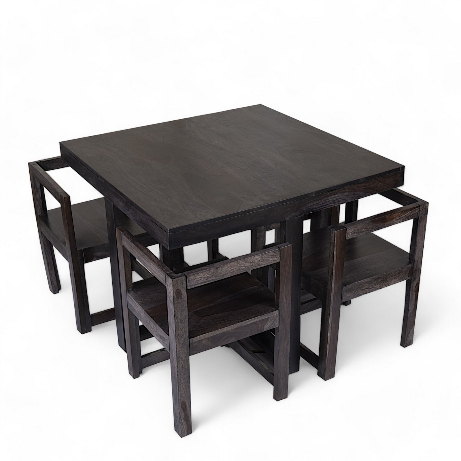 Ikiriya Kingston Sheesham Wood Accent 4 Seater Dining Table Set in Dark Mahagony Finish