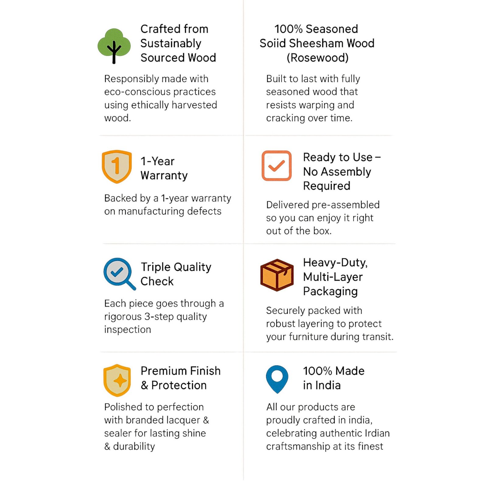 . Primary Material: 100% Solid Seasoned Sheesham Wood