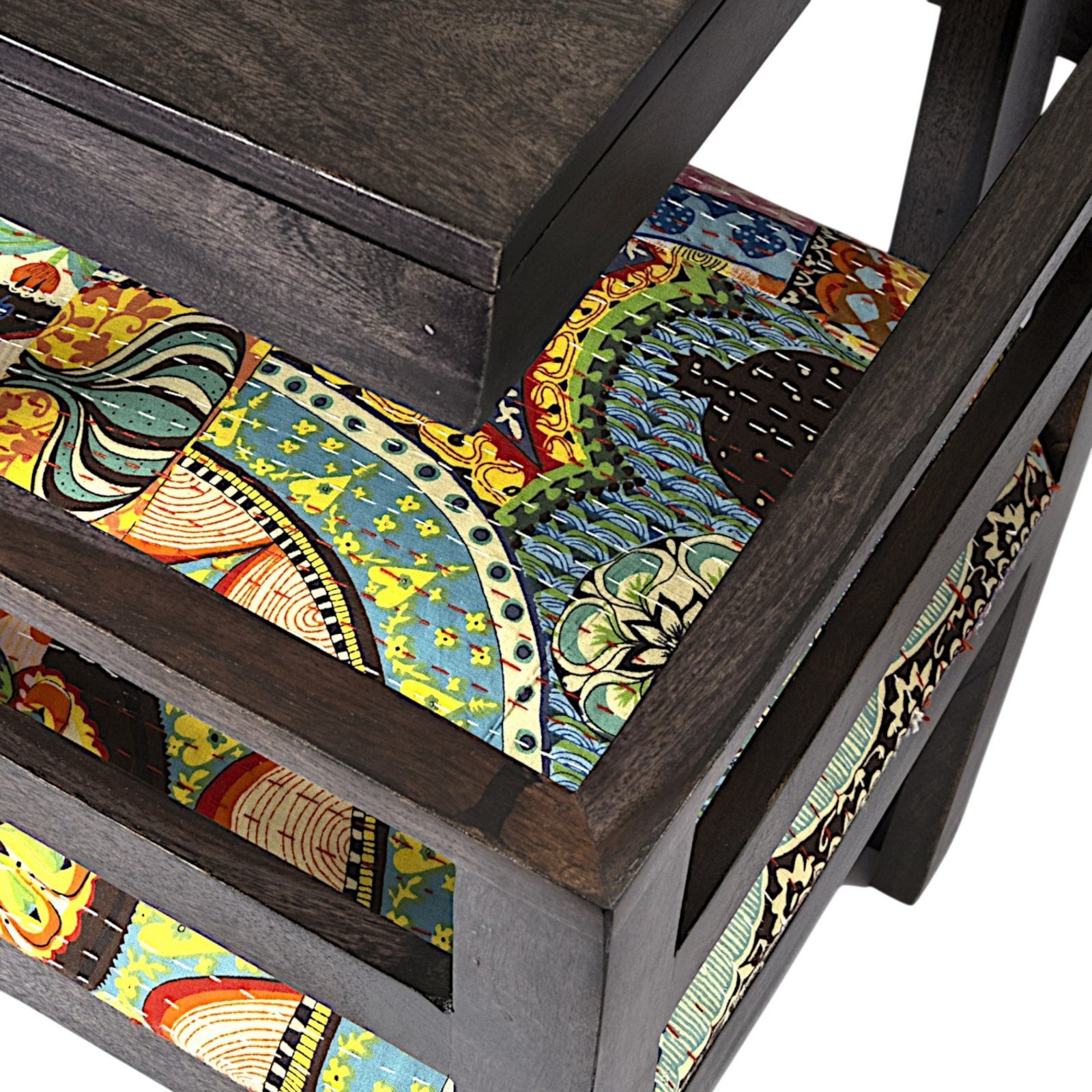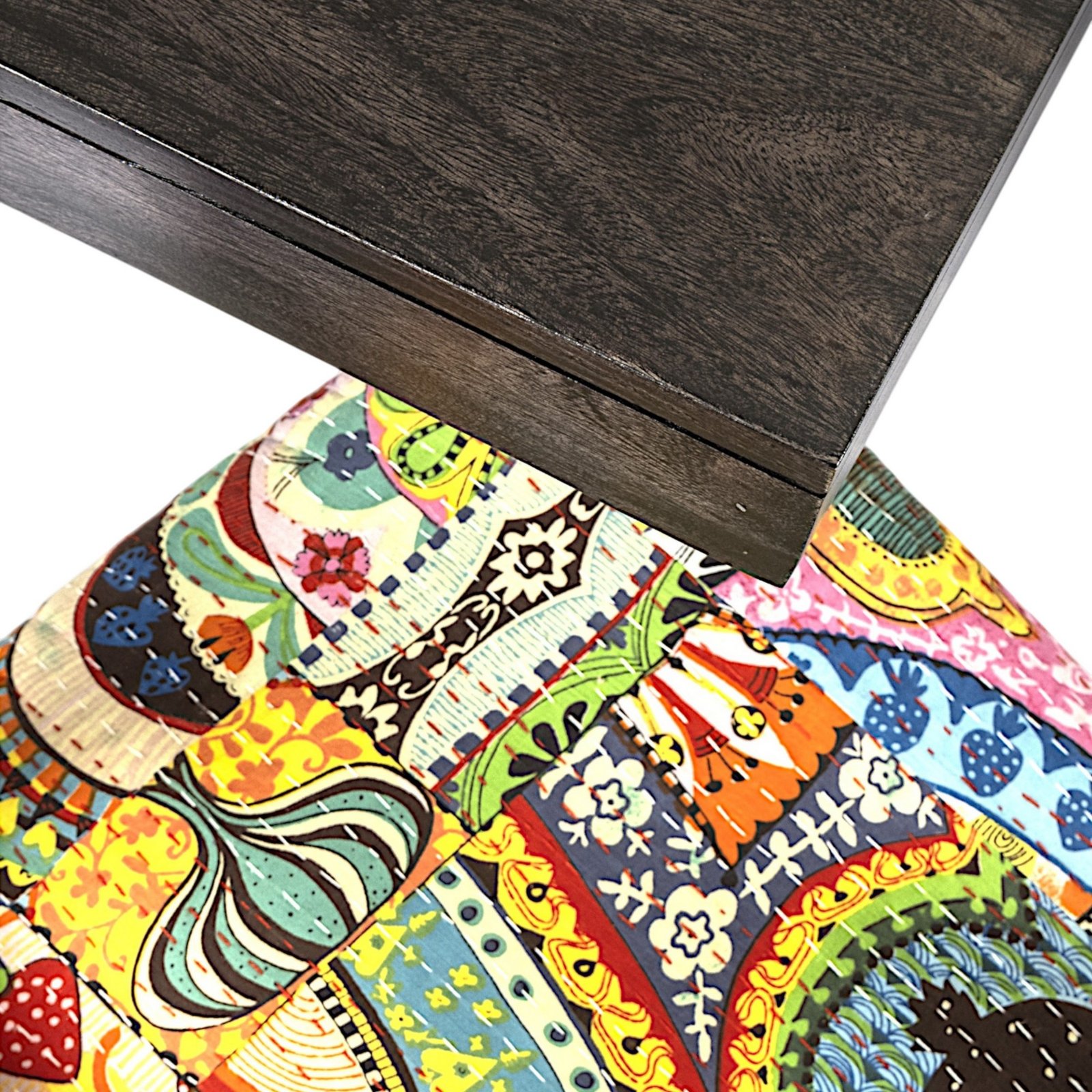 | Color: Dark Mahagony Finish with Israel Print Patchwork Kantha Cushioning |