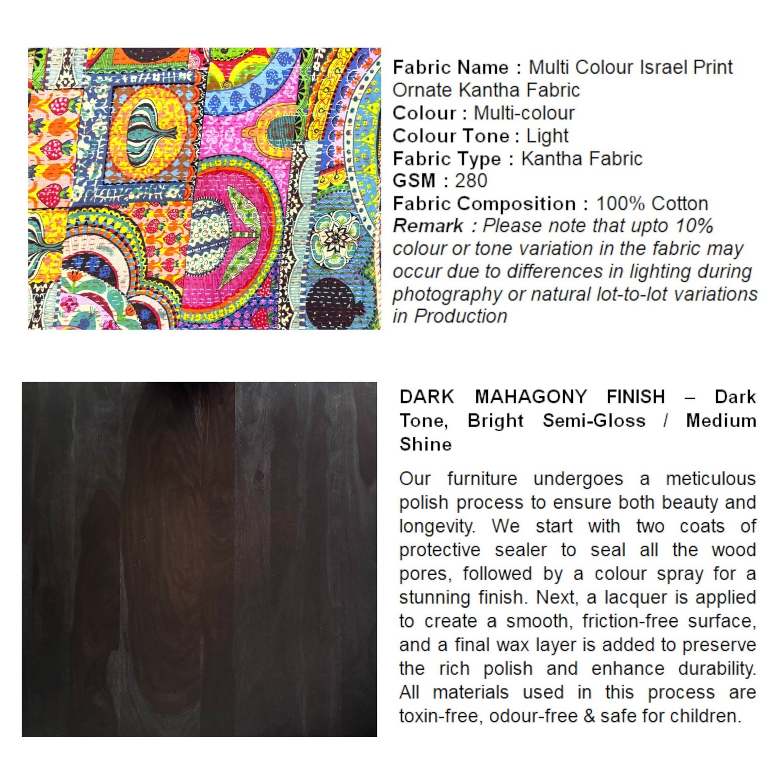 | Color | Dark Mahagony Finish with Israel Print Patchwork Kantha Cushioning |