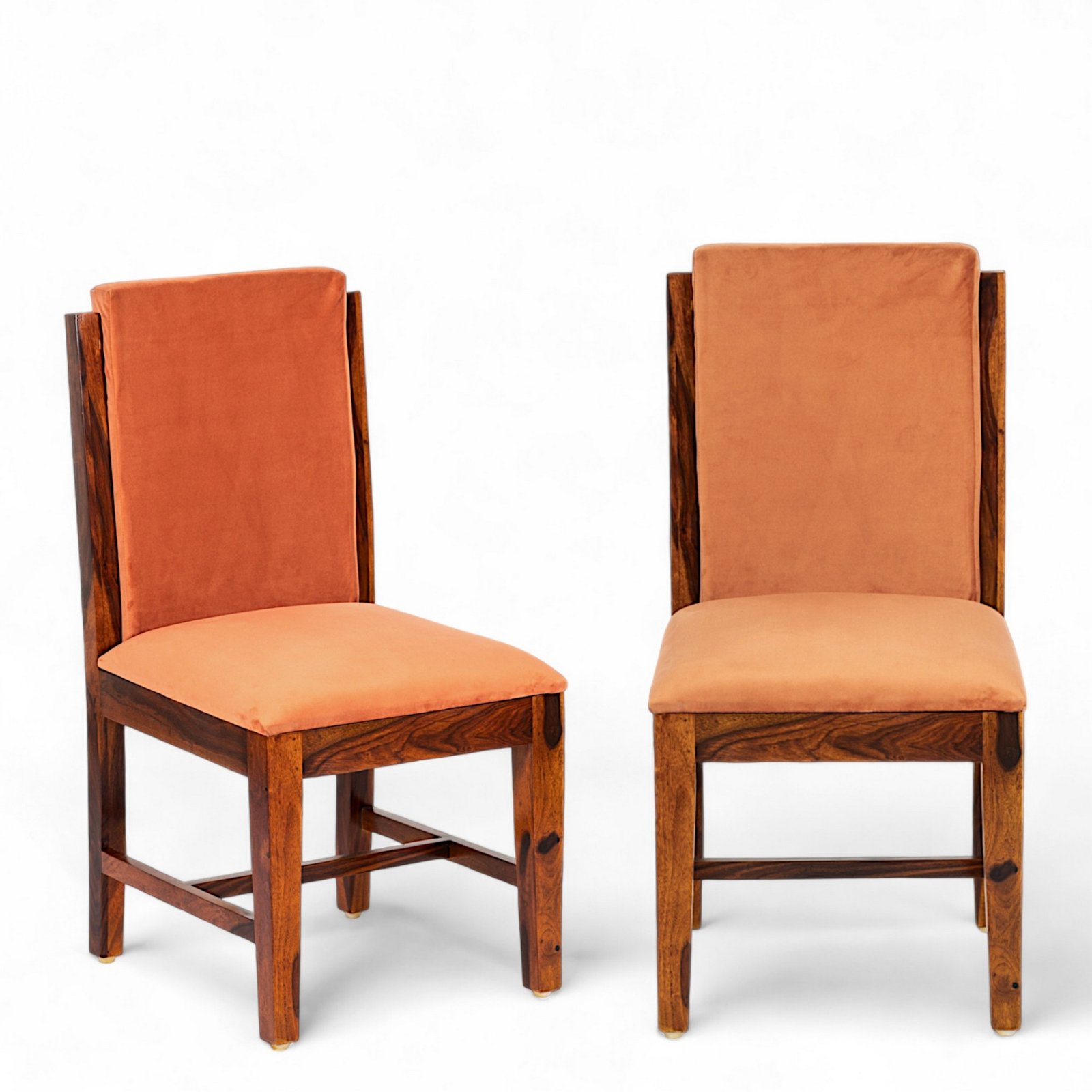• The Pumpkin Orange Mosha Velvet Upholstery on chairs brings a vibrant pop of color, perfect for any setting.
