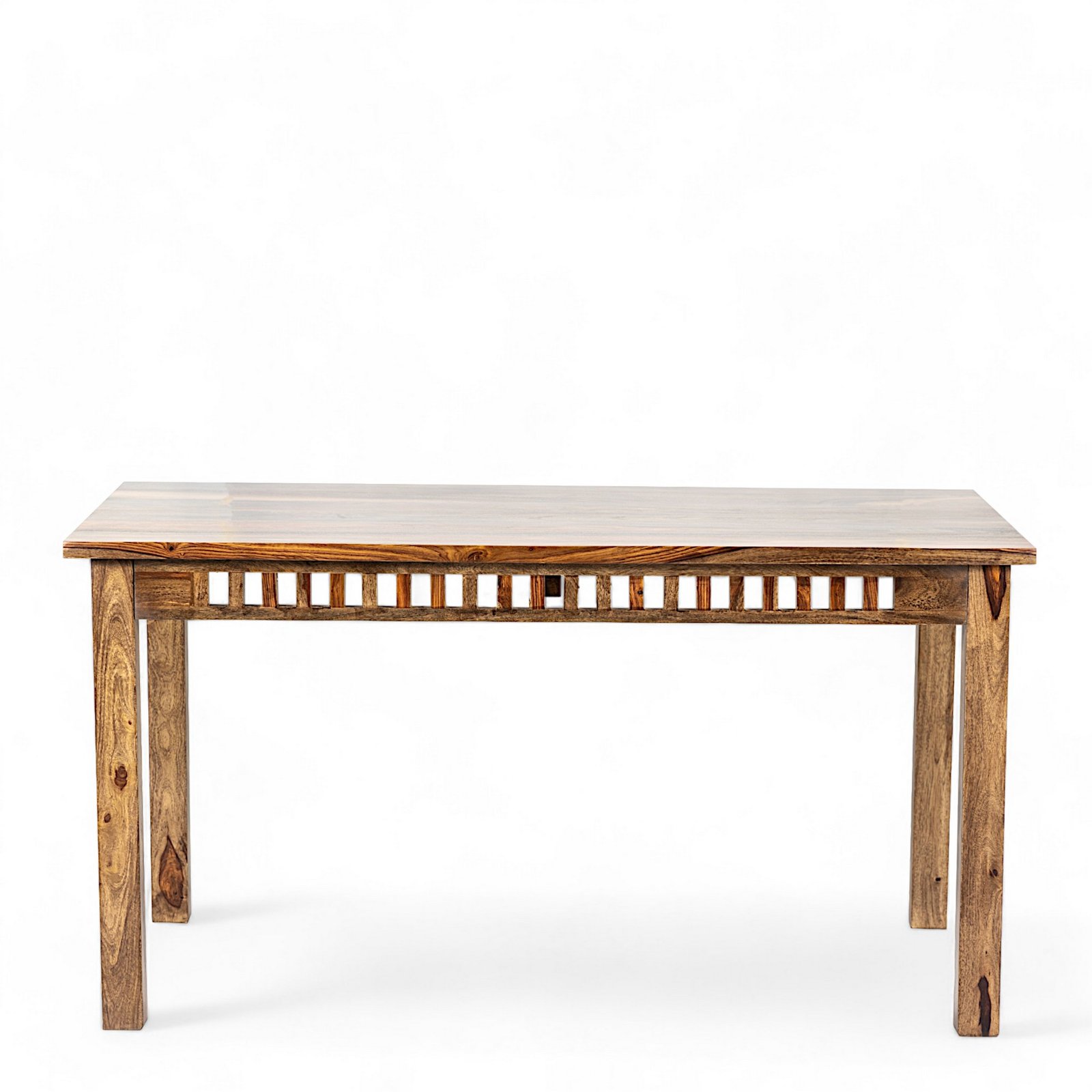 - Crafted from 100% seasoned solid Sheesham wood, this piece features a stunning light-tone teak finish with a bright, semi-gloss shine. Polished with high-quality lacquer and protected by a water-resistant sealer, it combines timeless elegance with exceptional durability, perfect for enhancing any living space.