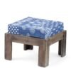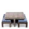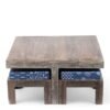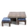 Ikiriya Blane Sheesham Wood Country Side Coffee Table Set with 4 Stools in Antique Grey Finish with indigo Patchwork Kantha Cushions