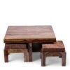 Ikiriya Irish Sheesham Wood Accent Coffee Table Set with 2 Stools in Teak Finish with Jute Beige Cushions