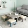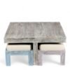Ikiriya Blane Sheesham Wood Country Side Coffee Table Set with 4 Stools in Antique Multi-Colour Finish with Jute White Cushions