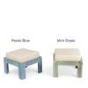 - Constructed from 100% seasoned solid Sheesham wood, this collection features a stunning Light Grey Distress finish for the table, complemented by an Antique Grey finish that adds a touch of vintage charm. The Stools come in delightful pastel shades of light pink, blue, green, and violet, all showcasing a charming distressed finish that enhances their light, cool, and bright tones. Finished with wood distemper and wood wax polish, this set combines vibrant aesthetics with durable protection, making it a perfect blend of style and functionality for any dining space.
