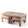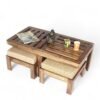 Ikiriya Palladio Sheesham Wood Accent Coffee Table Set with 4 Stools in Teak Finish with Jute Beige Cushions