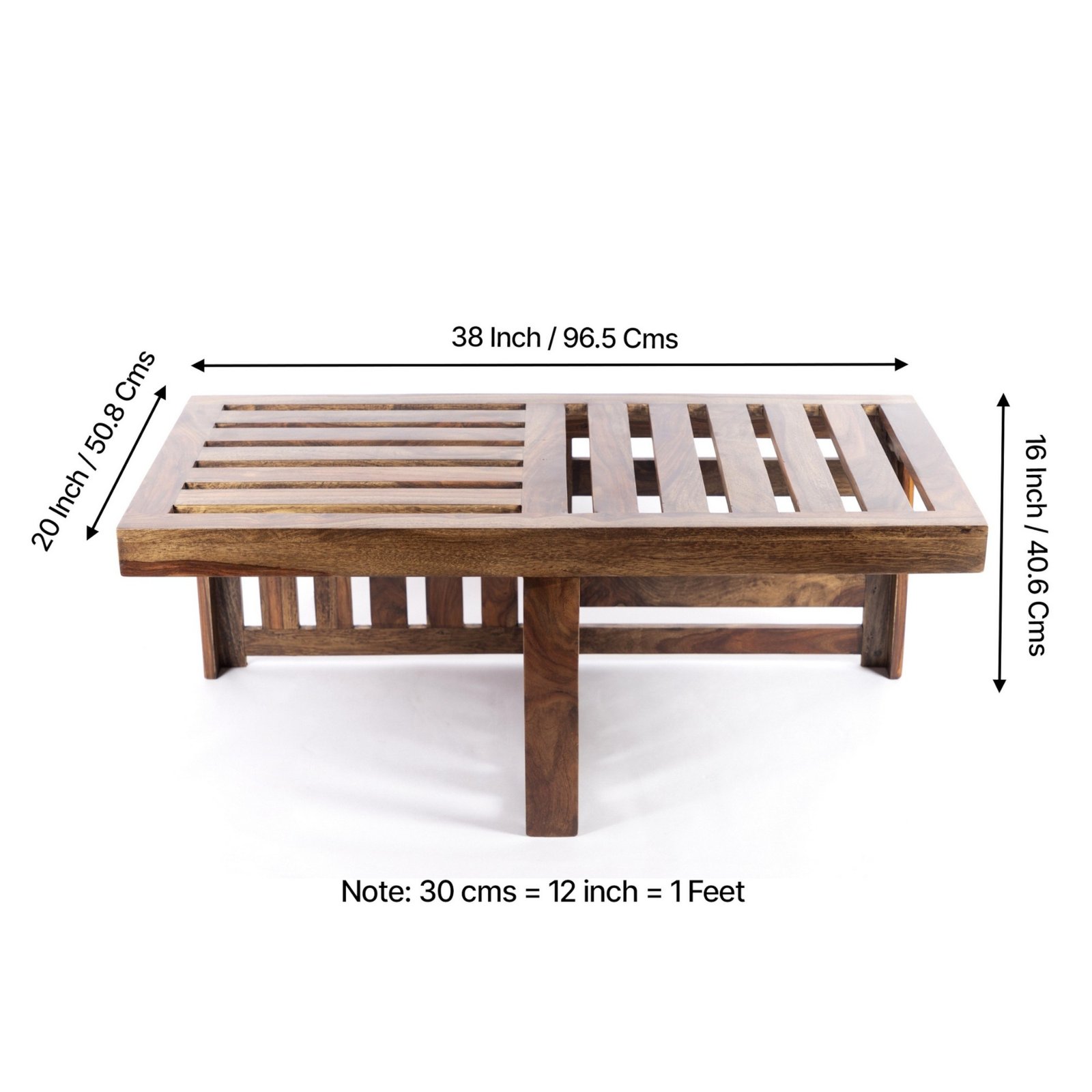 - Dimensions (WxDxH): Coffee Table – 38x20x16 Inch / 96.5×50.8×40.6 Cms; Weight – 8.6 Kgs | Stool (With Cushion) – 17x17x12.5 Inch / 43.2×43.2×31.8 Cms; Weight – 4.8 Kgs | Cushion – 15.75×15.75×3.75 Inch/ 40x40x9.5 Cms