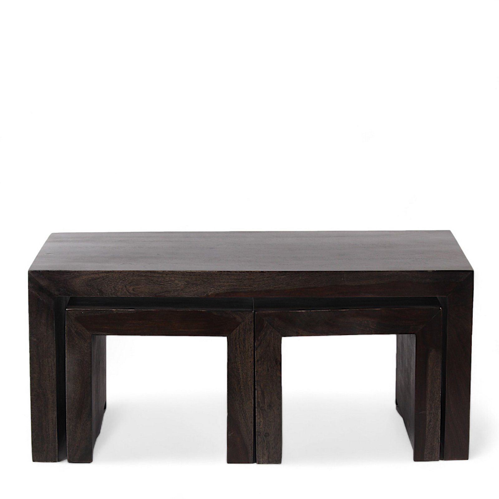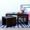 Ikiriya Kassel Sheesham Wood Contemporary Coffee Table Set with 2 Stools in Dark Mahagony Finish