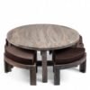 Ikiriya Nashville Sheesham Wood Country Side Coffee Table Set with 4 Stools in Antique Grey Finish with Cedar Brown Velvet Cushions