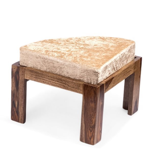 Irish Sheesham Wood Accent Coffee Table Set with 2 Stools in TEAK FINISH with Beige Sparkle Velvet Cushions