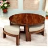 Palladio Sheesham Wood Accent Coffee Table Set with 4 Stools in TEAK FINISH with Jute Beige Cushions