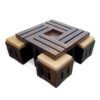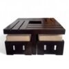 - Dimensions (WxDxH): Coffee Table – 33x33x16 Inch / 83.8×83.8×40.6 Cms; Weight – 17 Kgs | Stool (With Cushion) – 15x15x12.5 Inch / 38.1×38.1×31.8 Cms; Weight – 5.8 Kgs | Cushion – 14x14x3.75 Inch/ 35.6×35.6×9.5 Cms