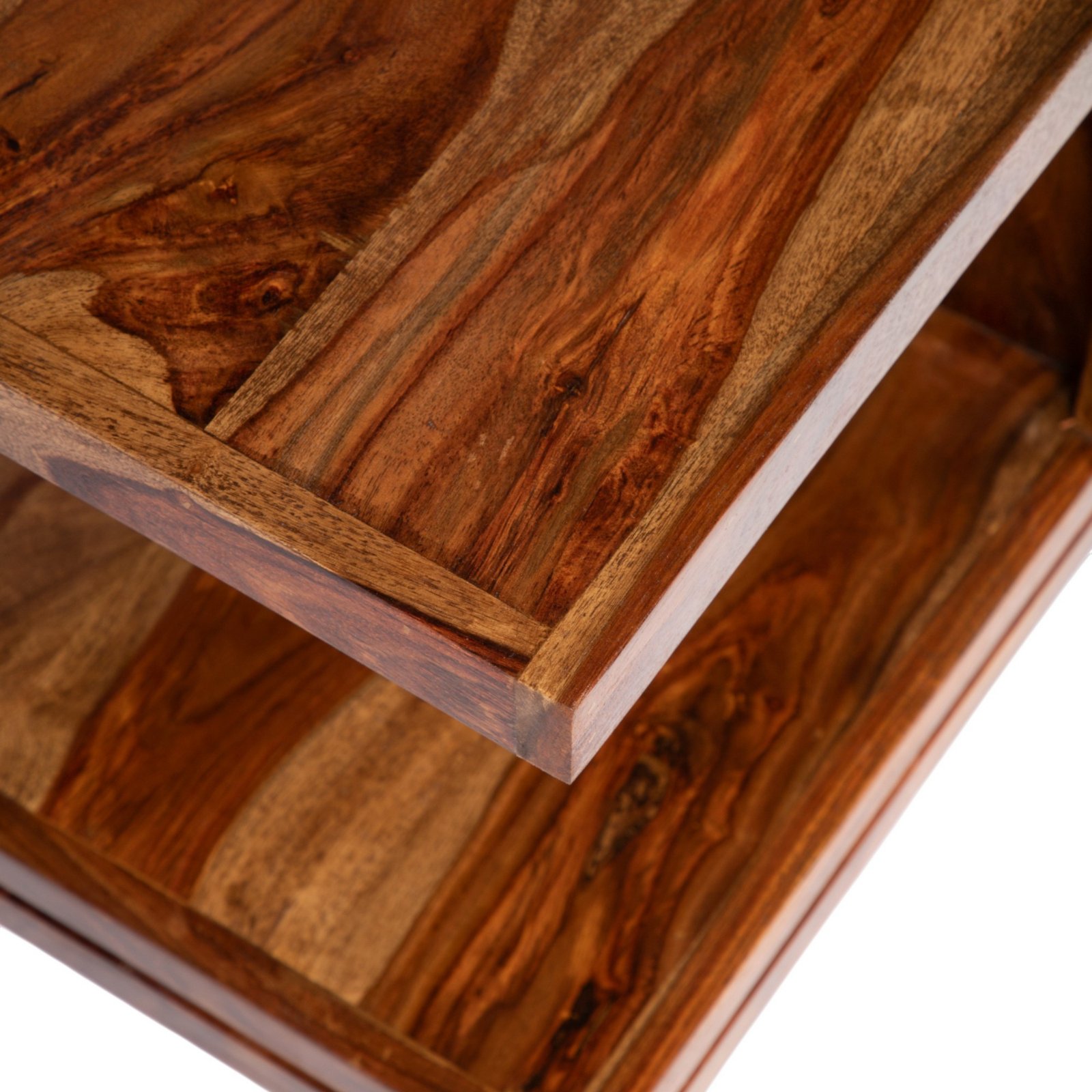 - Crafted from 100% seasoned solid Sheesham wood, this piece features a stunning light-tone teak finish with a bright, semi-gloss shine. Polished with high-quality lacquer and protected by a water-resistant sealer, it combines timeless elegance with exceptional durability, perfect for enhancing any living space.