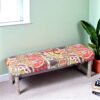 Ikiriya Asteria Sheesham Wood Bohemian 3 Seater Bench in Israel Print Patchwork Kantha