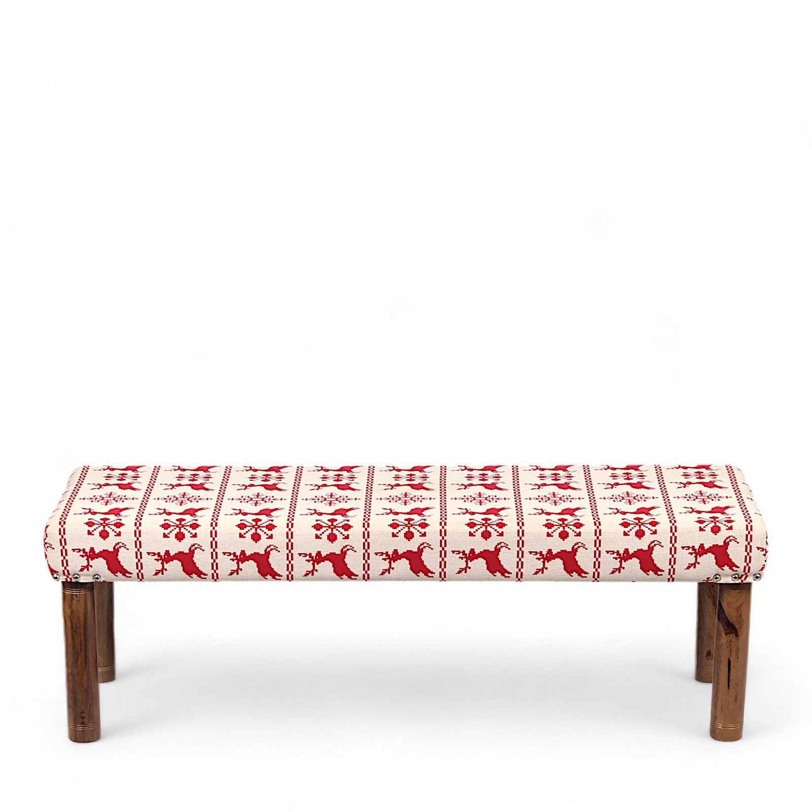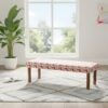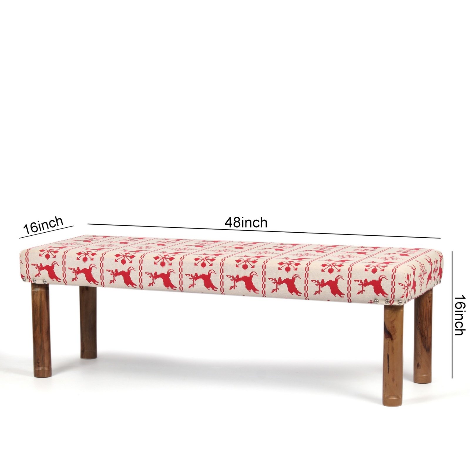 Ikiriya Asteria Sheesham Wood Parisian 3 Seater Bench in Beige Jacquard Work Fabric