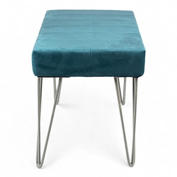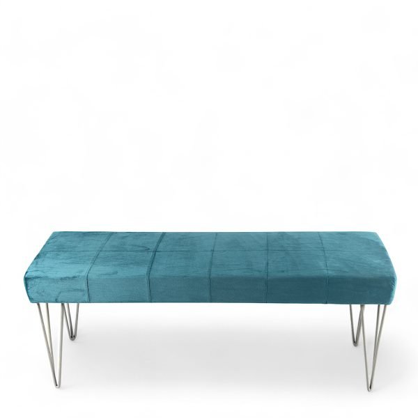 Belmont Sheesham Wood Accent 3 Seater Bench with Metal Legs in Turquoise Sea Velvet