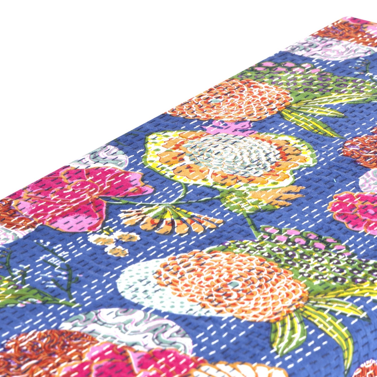 - Enjoy the unique charm of our Fruit Print Ornate Kantha Fabric in Blue, perfect for adding a pop of color and artistry.